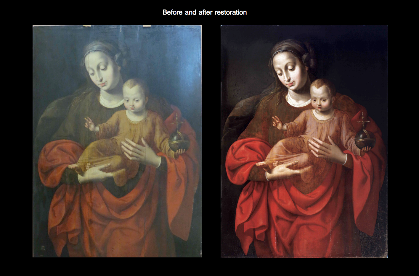 - Restoration in front of the public of a Flemish 15th century panel, 'Madonna with child'.